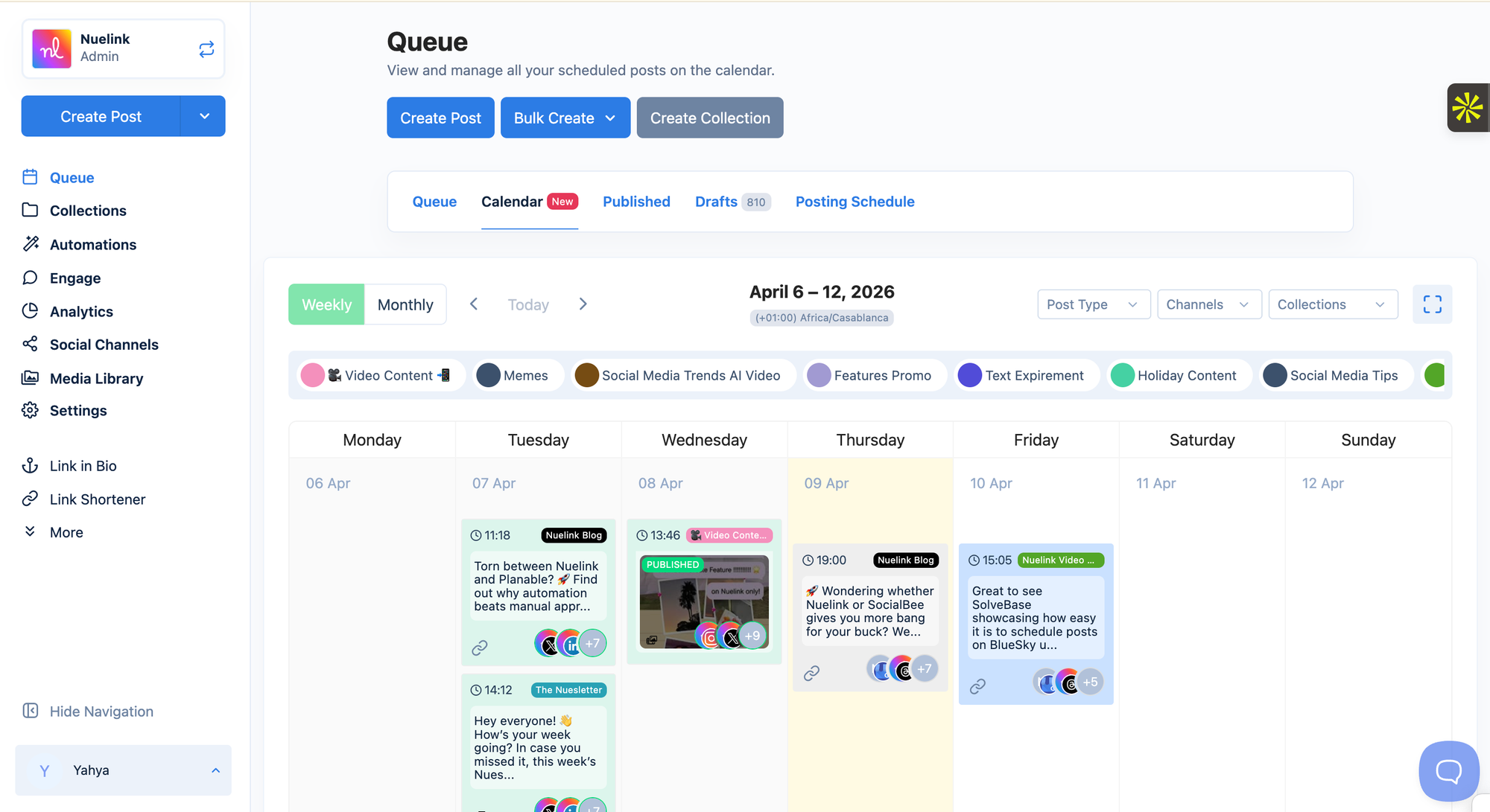 Nuelink's Collections let you group content by theme, campaign, or platform, making it incredibly easy for Cowork to know exactly where to drop each post. No messy feeds. Everything lands in the right place, every time.