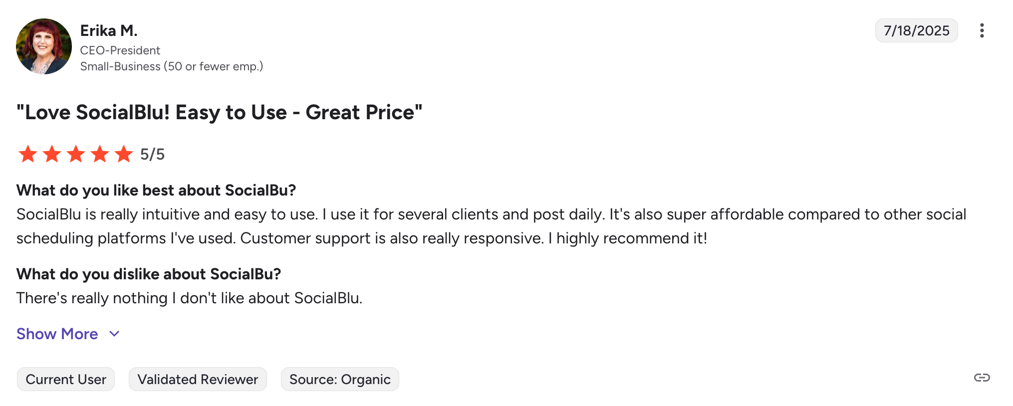 Reviews frequently mention the fast customer support and reliable scheduling tools. A few notes, occasional bugs, but overall, the experience is smooth and positive.