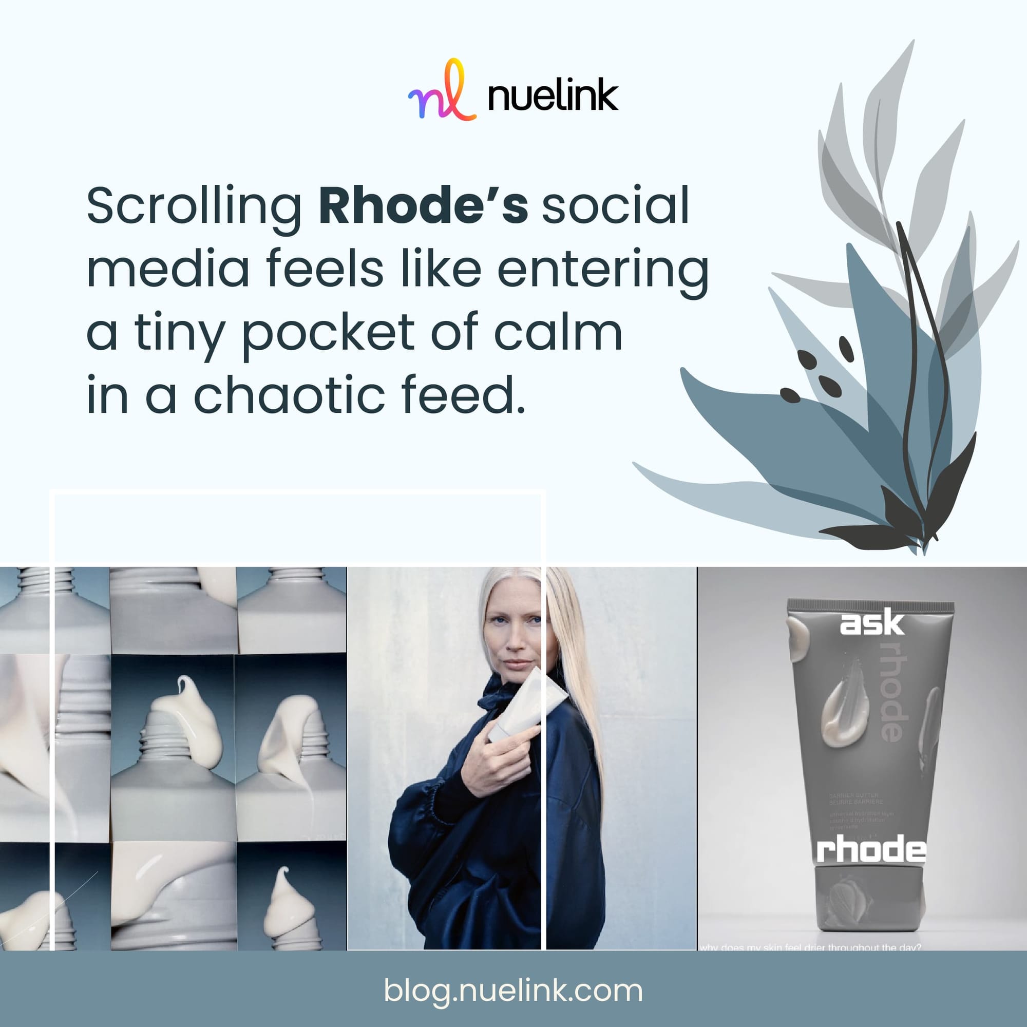If you scroll through Rhode’s feed, the first thing you notice isn’t the products. It’s calm. And that calm is intentional.