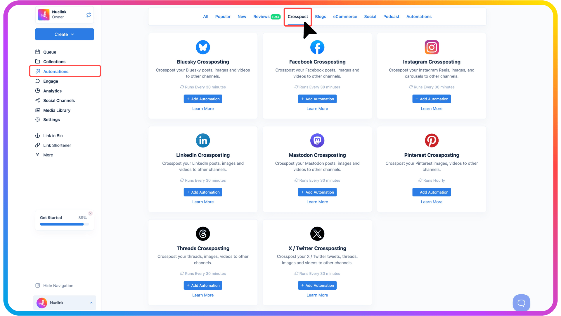 - Go to Automations → Add New Automation → Crossposting.