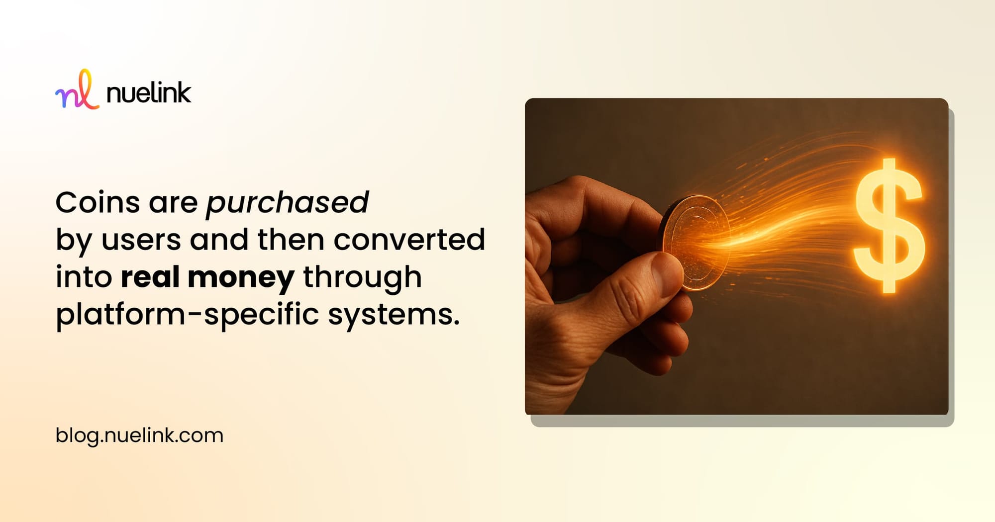 Coins are purchased by users and then converted into real money through platform-specific systems. The math varies, but here’s the general idea: