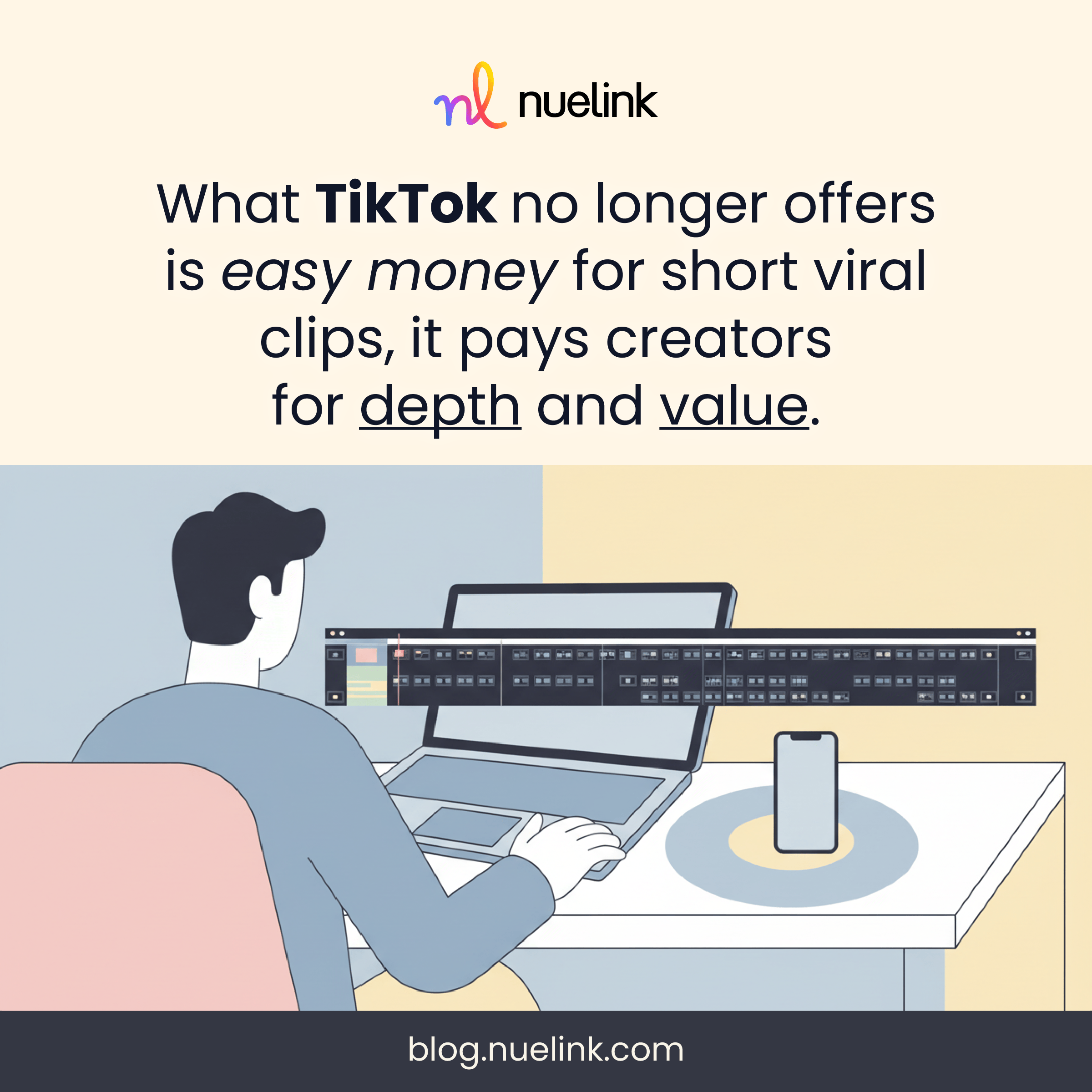 These thresholds are designed to reward consistency, not virality. That’s why tools like Nuelink are vital, they help you keep a strong and steady posting pace. A single viral video can help, but it won’t replace steady output.
