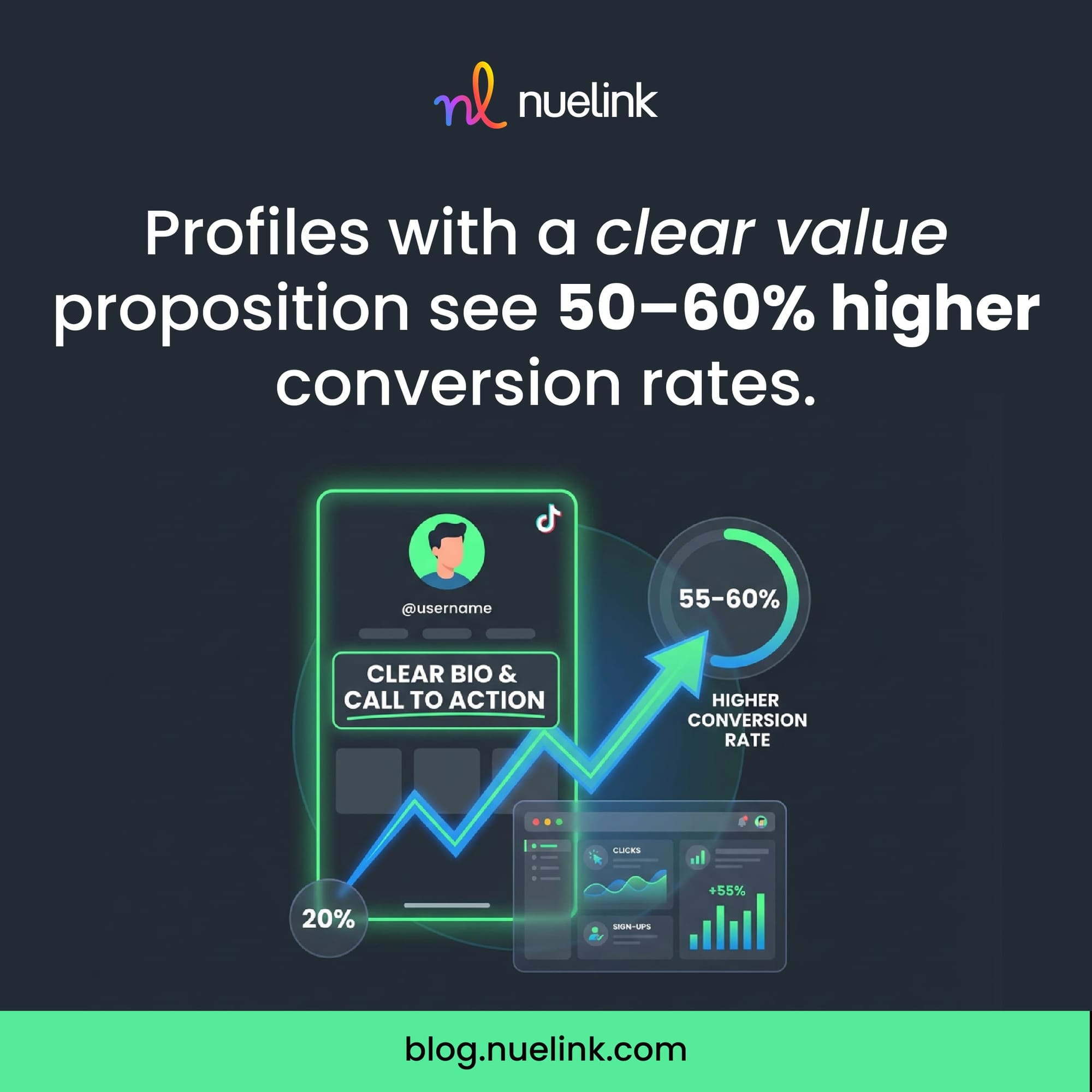 Your bio is what helps them quickly decide whether your content is meant for them. When your bio clearly speaks to a specific niche, your profile converts better, even if your reach stays the same. Profiles with a clear value proposition see 50–60% higher conversion rates.